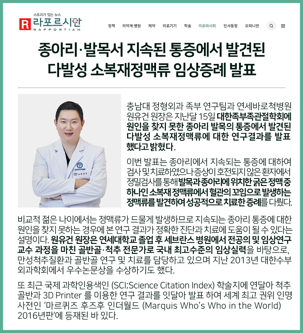 [보도자료] 종아리 발목서 지속된 통증,,, 다발성 소복재정맥류 임상증례 발표
