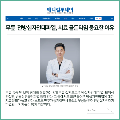 [보도자료] 무릎 전방십자인대 파열, 치료 골든타임 놓치면 안되는 이유