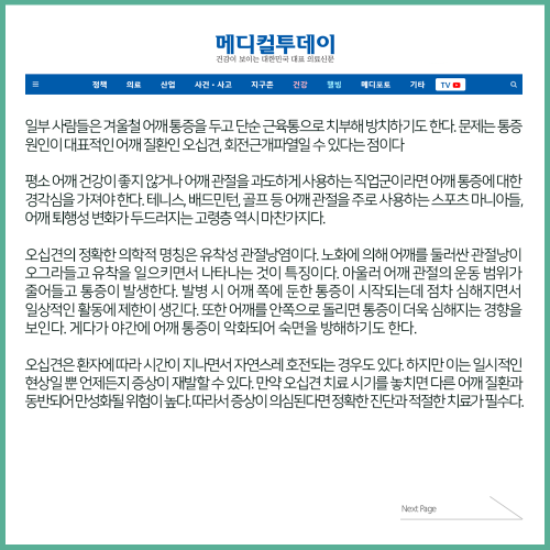 [보도자료] 어깨 통증 초래 '오십견과 회전근개파열' 만성화 주의