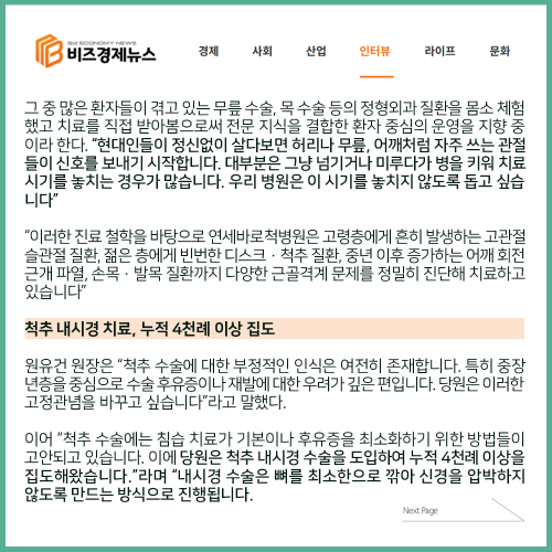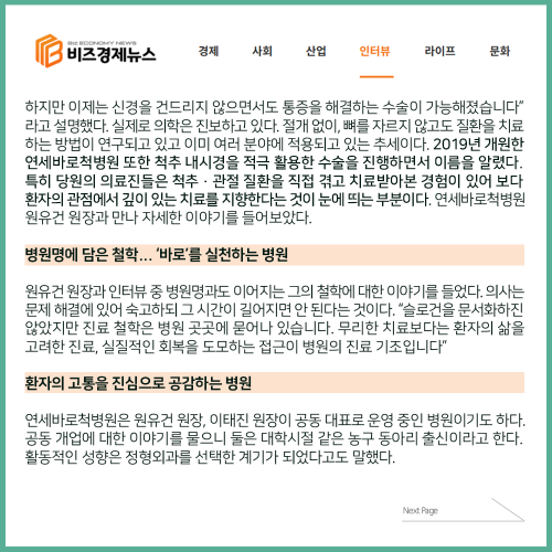 [보도자료] 성실한 진료의 기준이 되다, 연세바로척 원유건 원장