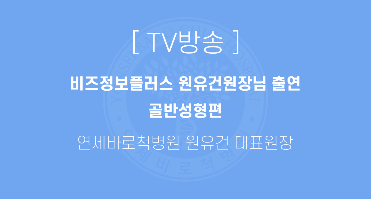 MTN [신영일의 비즈정보 플러스]에 연세바로척병원 원유건원장님이 출연하셨습니다.