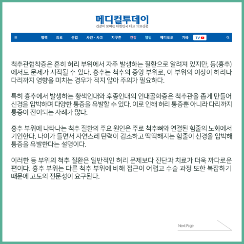 [보도자료] 등쪽 척추 문제, 결국 허리,다리통증 이어져..
