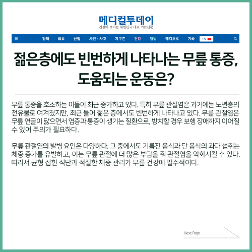 [보도자료] 젊은 층의 무릎 통증, 도움되는 운동은?