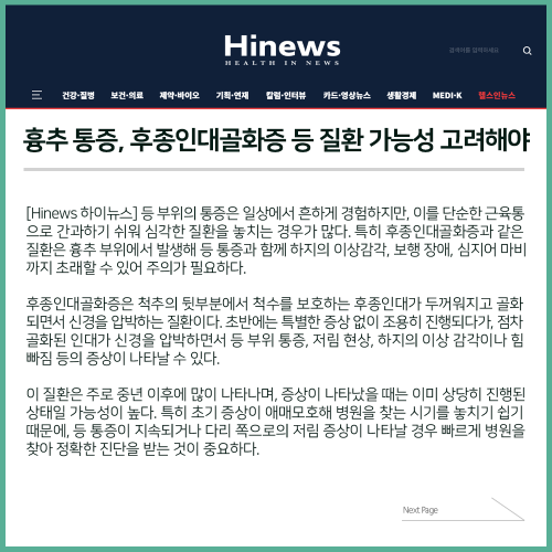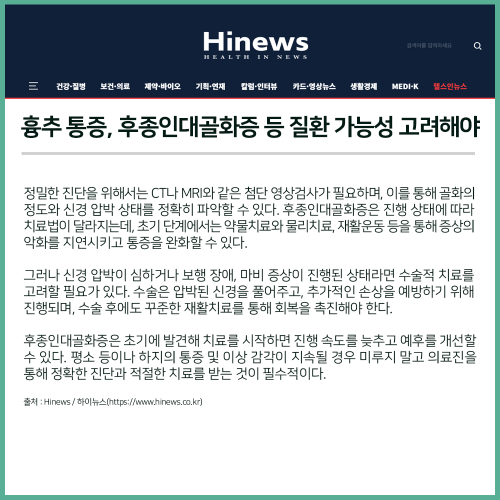 [보도자료] 흉추 통증, 후종인대골화증 질환 가능성 고려해야..