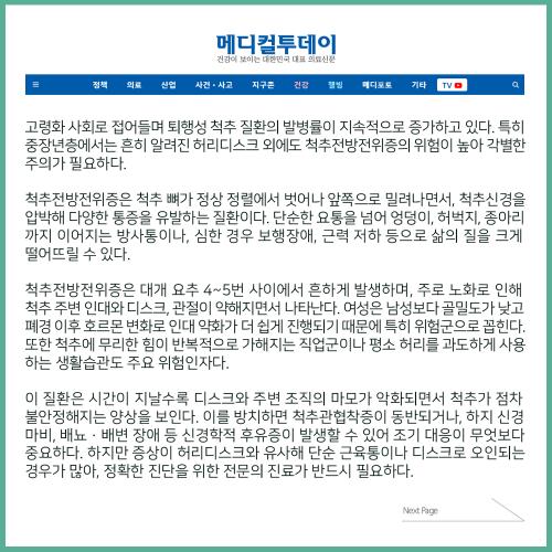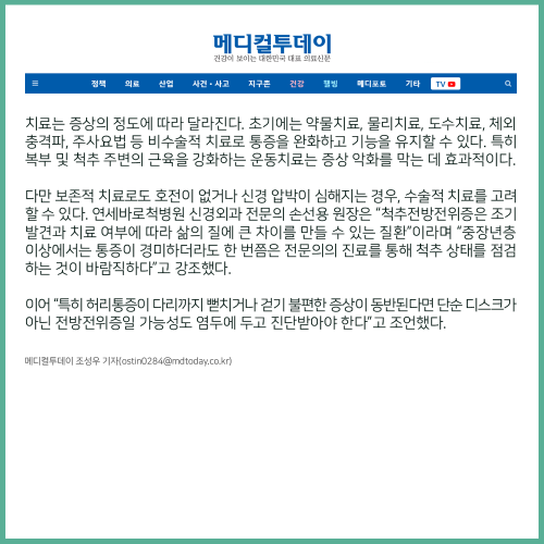 [보도자료] 허리디스크보다 더 위험한 척추전방전위증 방치하면 마비까지?!