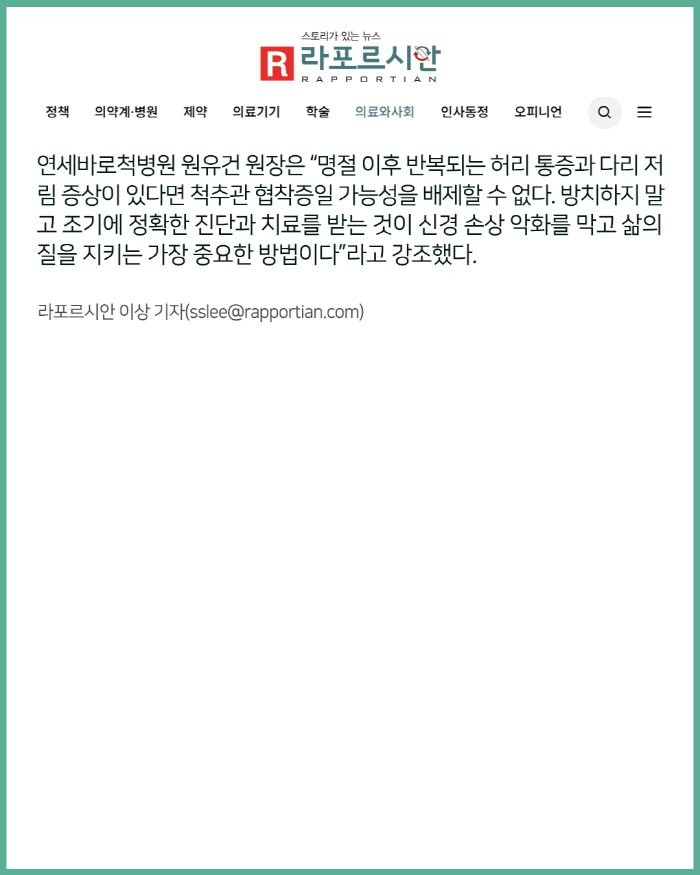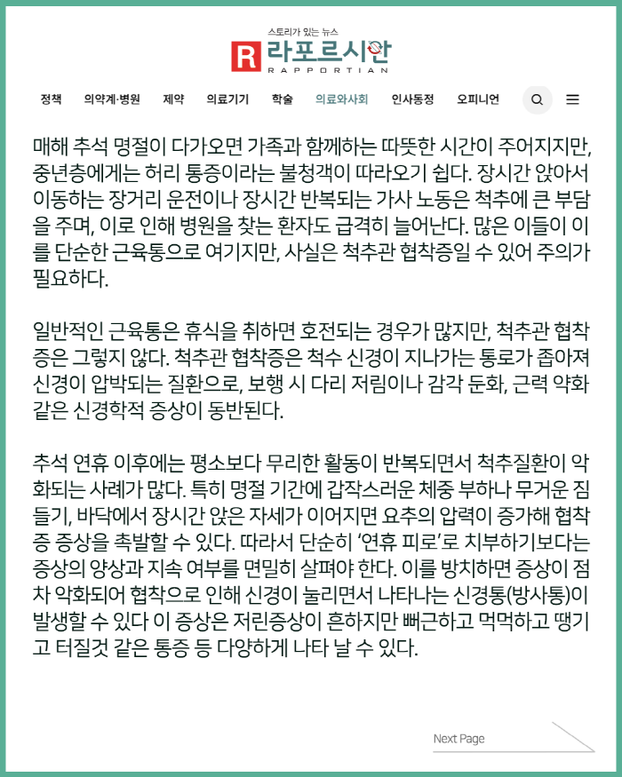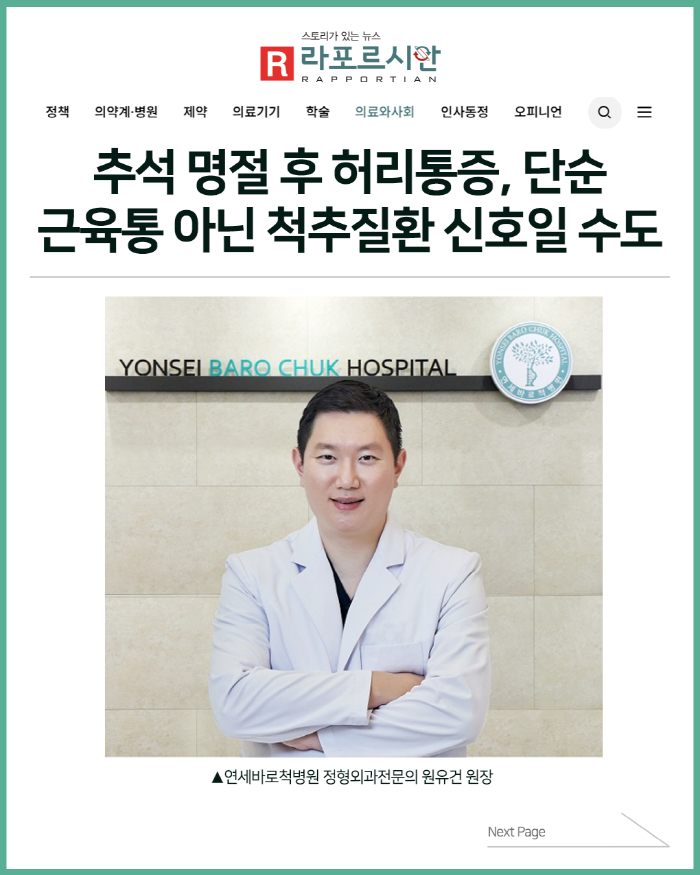 [보도자료] 추석 명절 후 허리통증, 단순 근육통 아닌 척추질환 신호일 수도