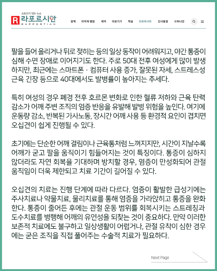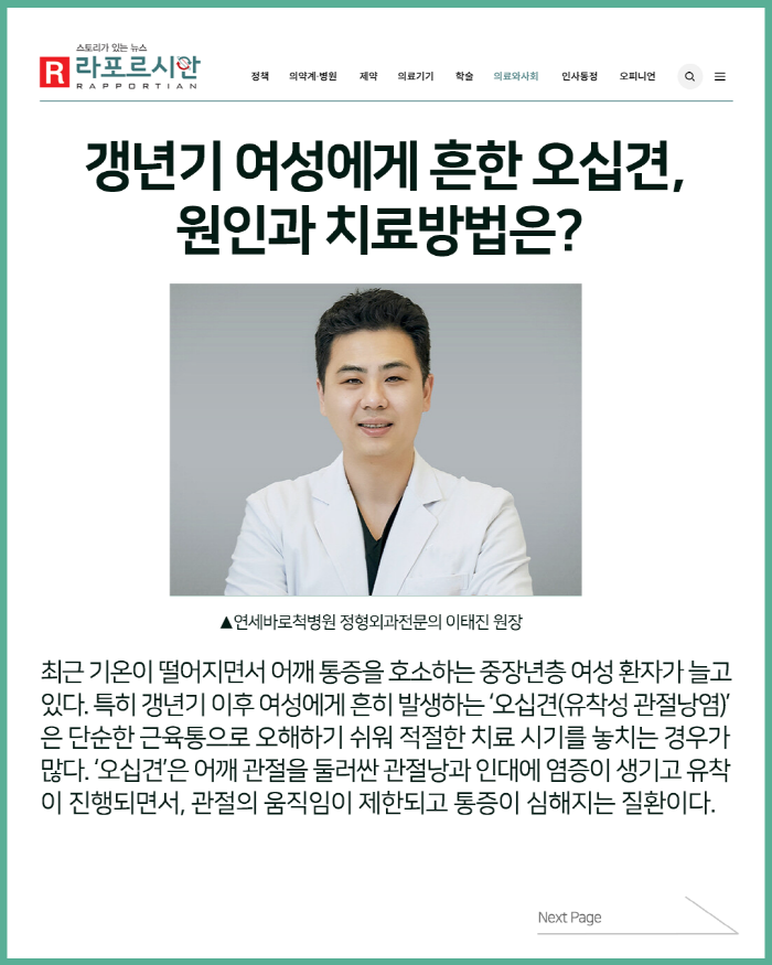갱년기 여성에게 흔한 ‘오십견’, 원인과 치료법은?