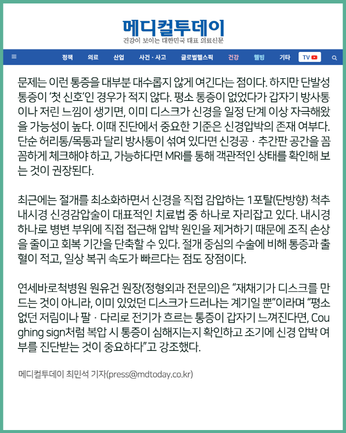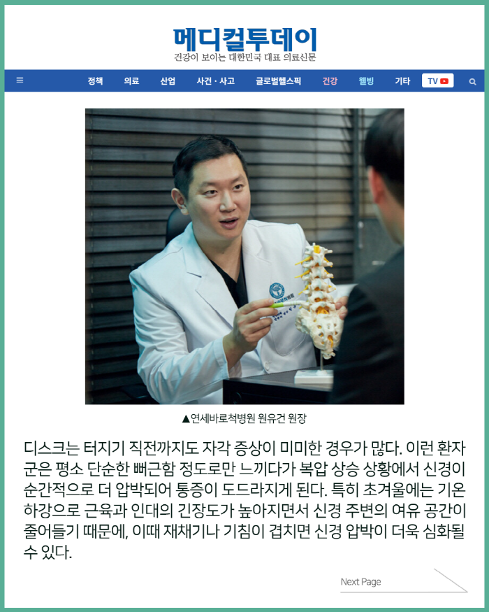 쌀쌀해진 날씨, 재채기 하다 허리에 통증...디스크 초기 증상과 원인