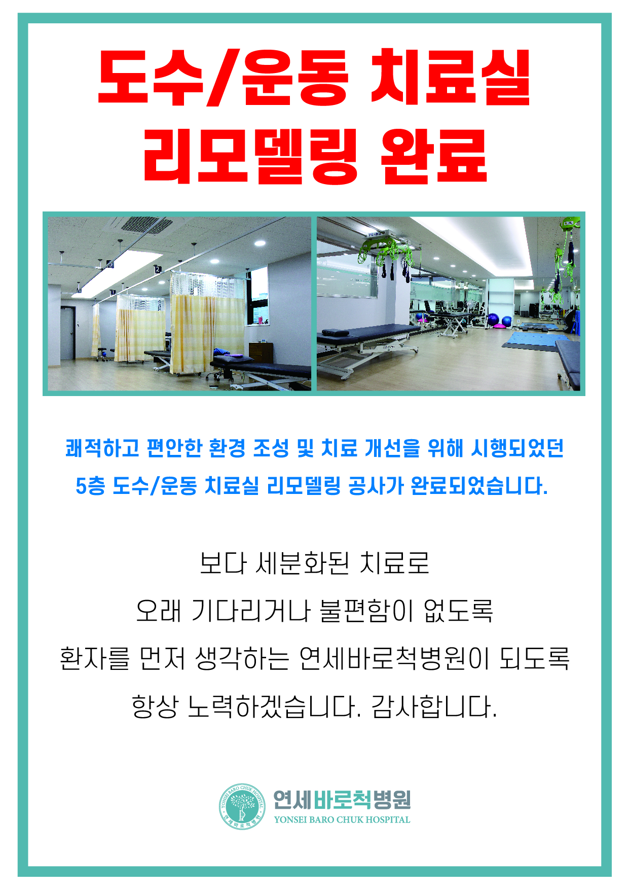 도수 / 운동 치료실 리모델링 공사 완료