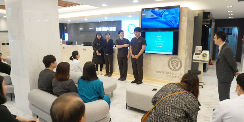 더 나은 발전을 위해 전직원이 파이팅을 하며 연세바로척병원의 역사적인 첫 월례조회를 마무리하였습니다.