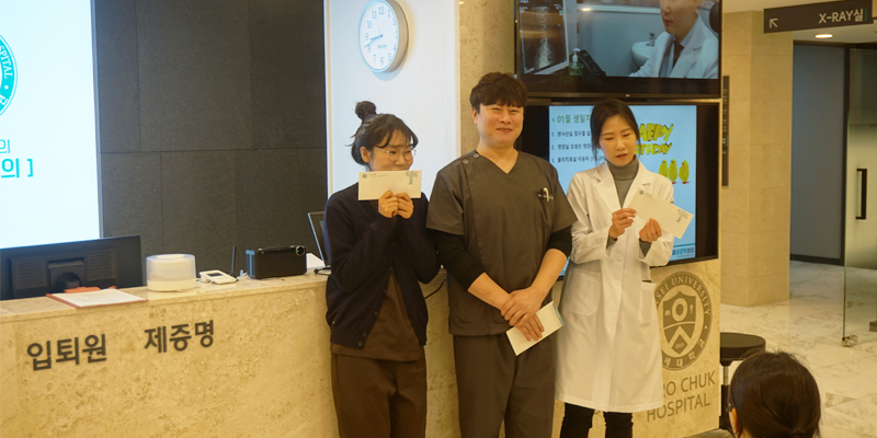 1월 생일자 스태프분들에게 직접 마음을 담아 축하를 전달해주시는 원유건 원장님과