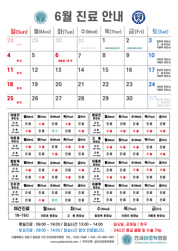 정형외과, 신경외과, 내과, 마취통증의학과, 영상의학과