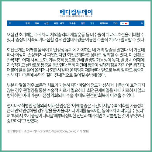 [보도자료] 어깨 통증 초래 '오십견과 회전근개파열' 만성화 주의