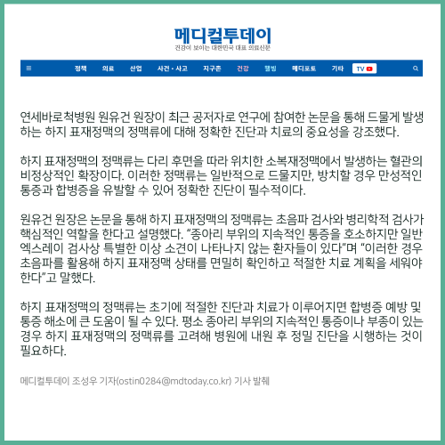 [보도자료] 종아리 통증 원인 하지 표재정맥의 정맥류, 치료 필요
