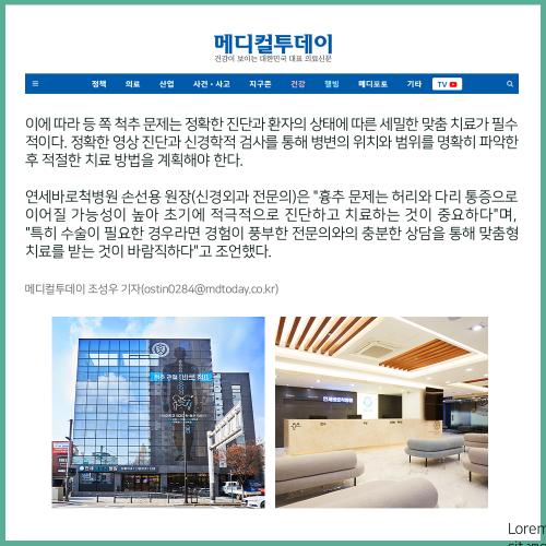 [보도자료] 등쪽 척추 문제, 결국 허리,다리통증 이어져..