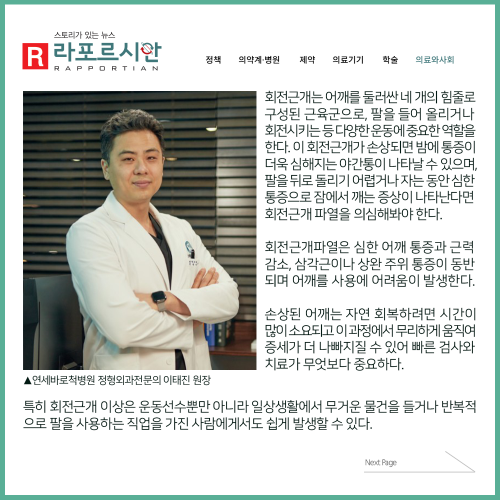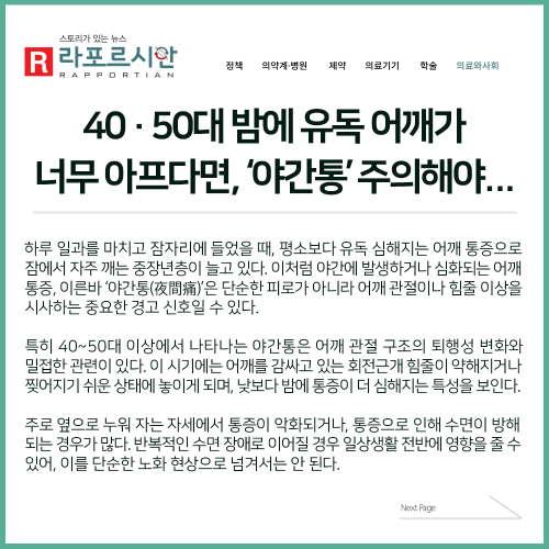 [보도자료] 4050대 밤에 어깨가 아프다면, 야간통 주의해야