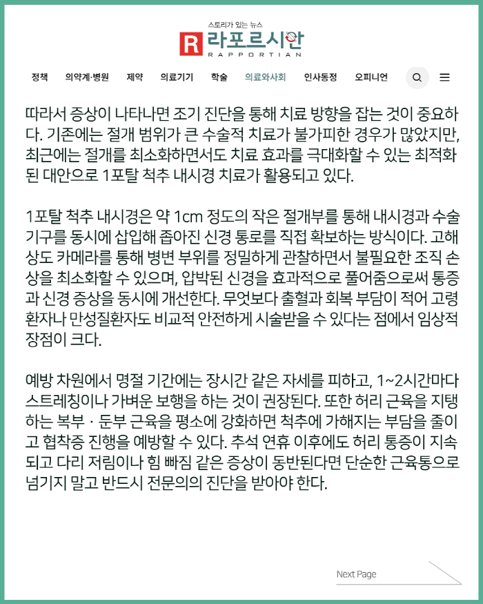 [보도자료] 추석 명절 후 허리통증, 단순 근육통 아닌 척추질환 신호일 수도