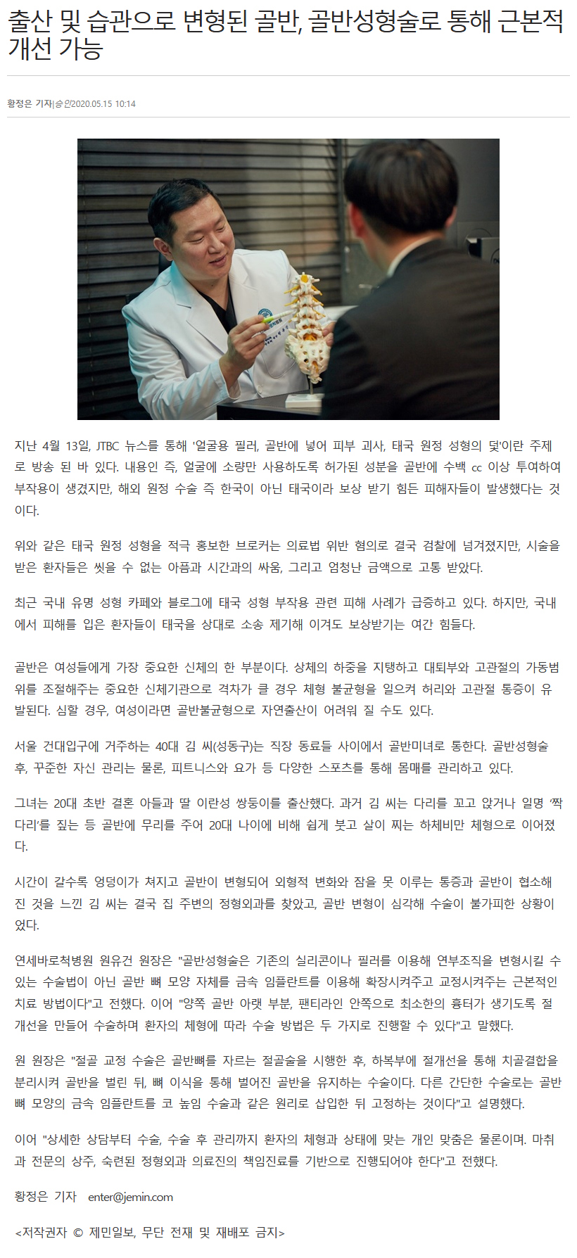 이어 "상세한 상담부터 수술, 수술 후 관리까지 환자의 체형과 상태에 맞는 개인 맞춤은 물론이며. 마취과 전문의 상주, 숙련된 정형외과 의료진의 책임진료를 기반으로 진행되어야 한다"고 전했다.