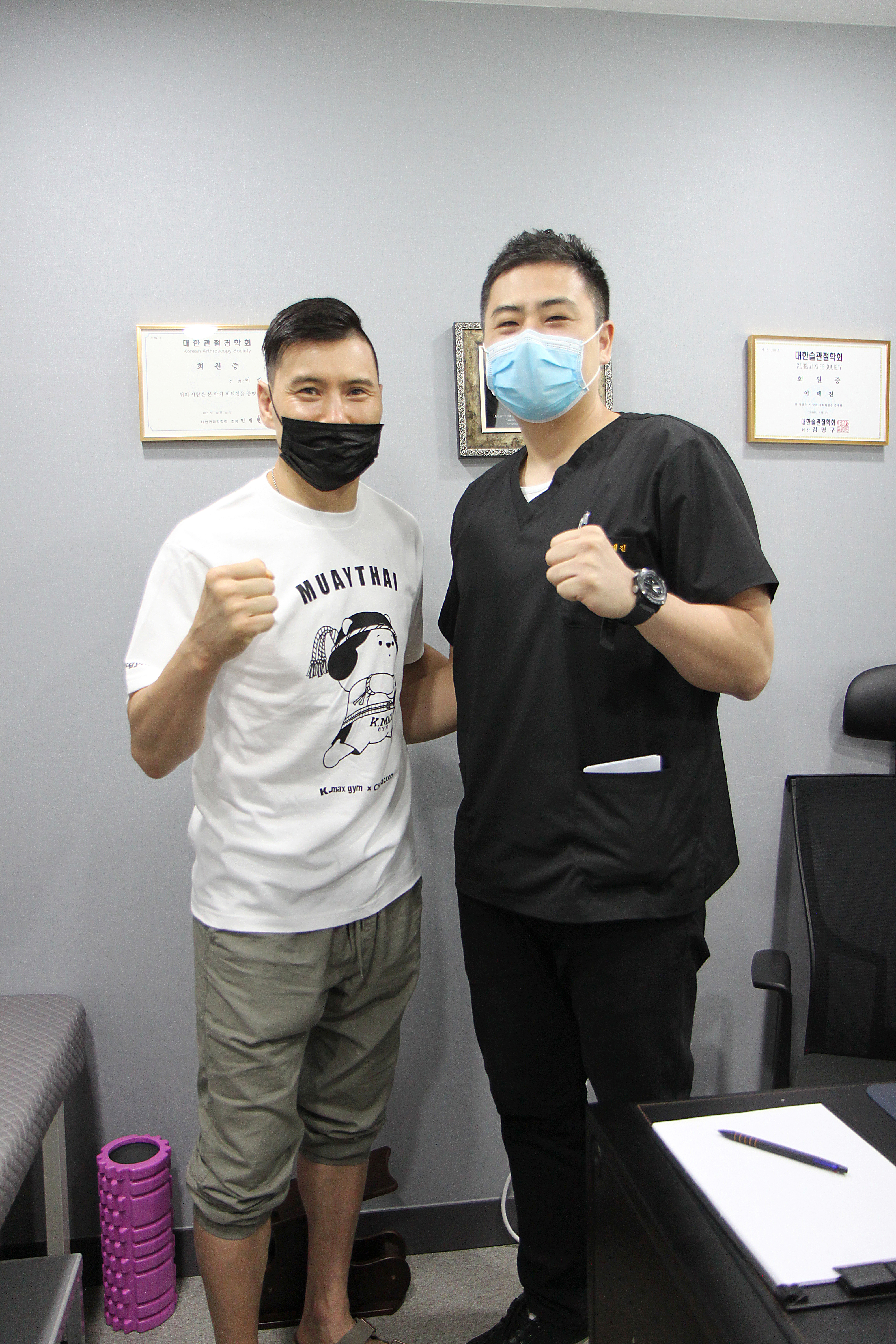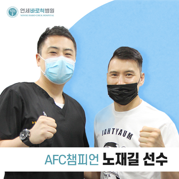 AFC 챔피언 노재길 선수가 연세바로척병원에 내원했습니다.