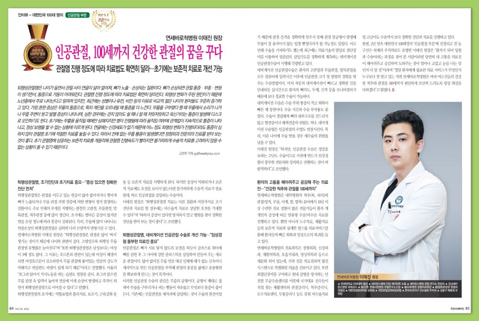 한편, 2년 연속 대한민국 100대명의 ‘인공광절 부문’에 선정되고 전 농구선수 허재의 주치의로도 유명한 이태진 원장은 “환자가 되어 입원과 수술이라는 과정을 겪어 본 사람이라면 당연히 내 고통을 의료진이 헤아려주고