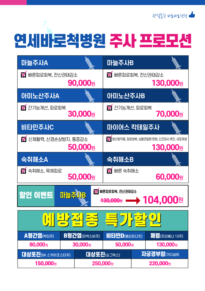 연세바로척병원 2026년 3월 주사프로모션