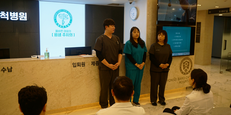 연세바로척병원의 모든 선생님들은 중요하기에 서로간의 커뮤니케이션에 중점을 두려고 조회를 실시하였습니다.