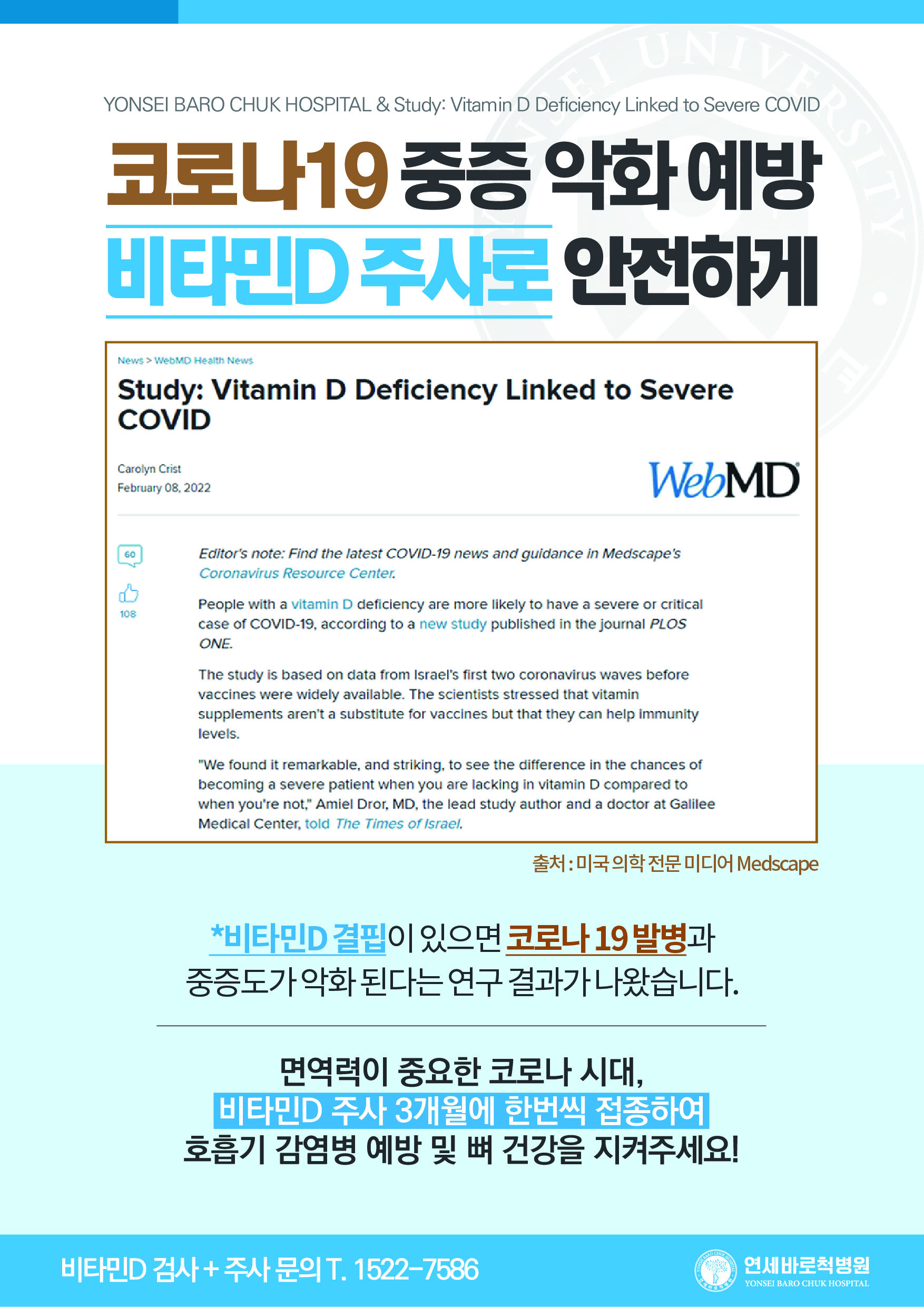 코로나19 중증 악화 예방, 비타민D 주사로 안전하게