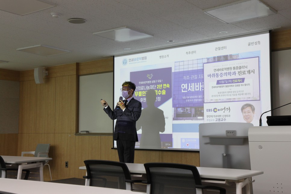 최근까지 한양대 주임교수로 계셨다가 연세바로척병원에서 난치성 두통과, 뇌질환과 관련된 진료까지 담당하고 계시는 고용 원장님께서 지난 주에는 보험연수원에서 특별한 강의를 하고 오셨습니다.