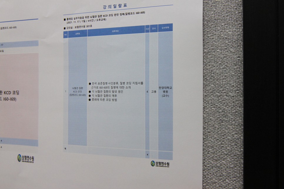 ​해당 교육은 보험연수원에서 진행하는 클레임 > 중급과정으로써 강의에 참여하신 고용 원장님께서는 보험진료 지침서 집필에 참여하셨을 정도로 보험 분야에 대해서 전문적인 지식을 겸비하고 계십니다.