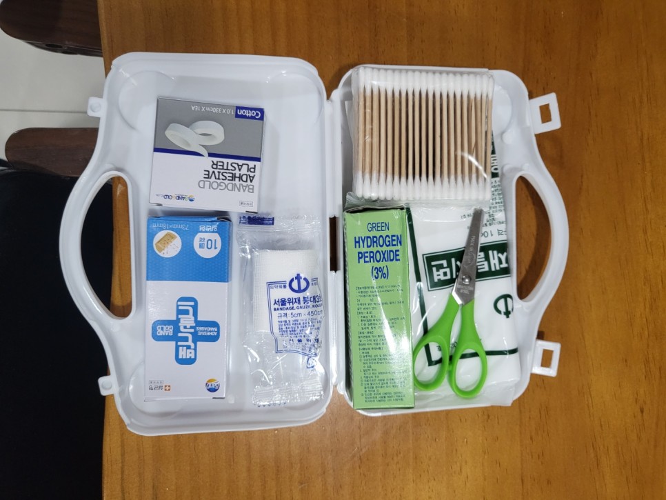 #giftset #휴대용구급함 안에는 #데일밴드 #붕대 #과산화수소 #면봉 #가위 등이 들어 있습니다.