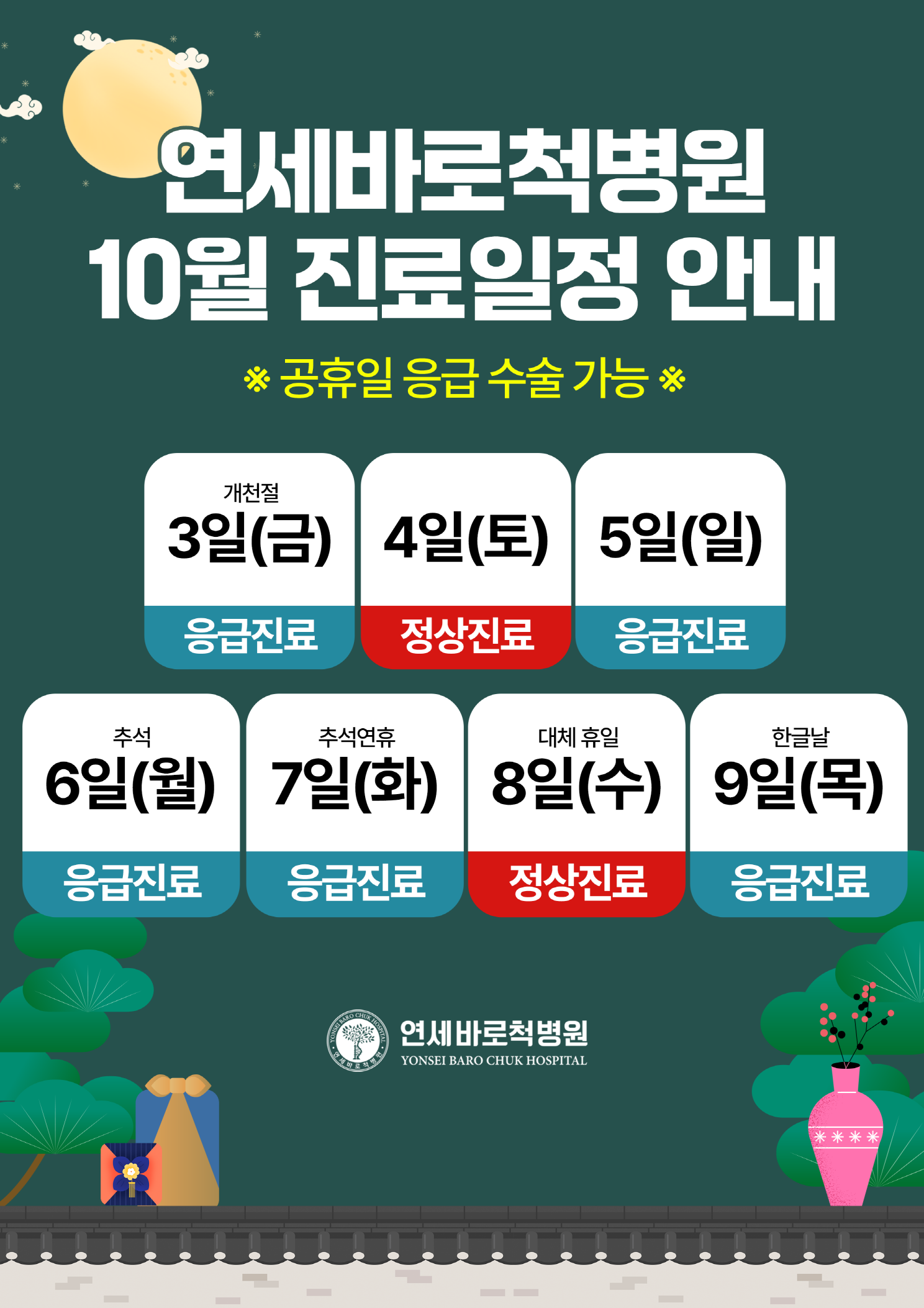 연세바로척병원 2025년 10월 진료일정
