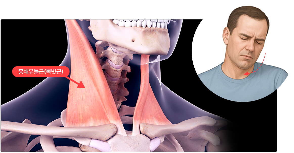 흉쇄유돌근(목빗근)이 짧거나 수축할 경우 혹은 신경계 문제
